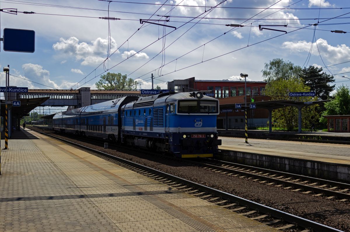 Für den Einsatz mit den ¦koda-Doppelstockwagen sind einige 750.7 mit der Steuerung der Neubauwagen ausgerüstet worden. Eine davon ist 750 712, die hier gerade Ostrava-střed verlässt.