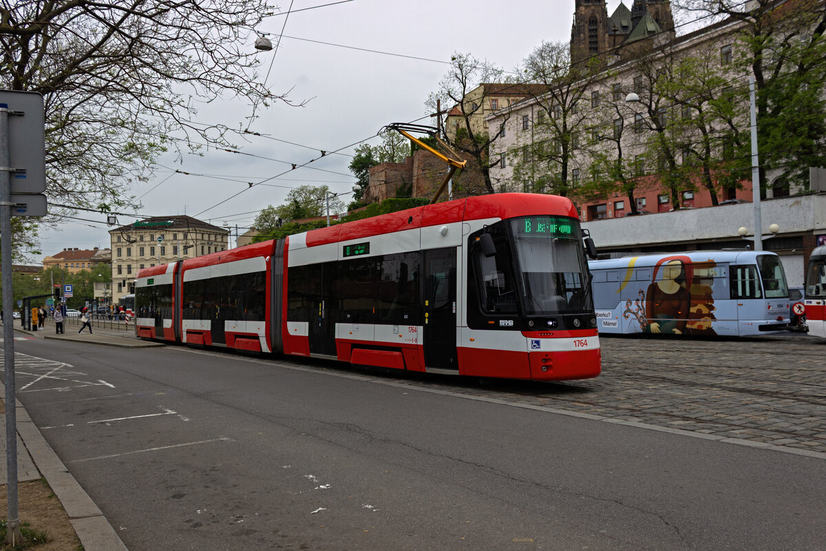 Zur Zeit meines Besuches waren erst 5 Exemplare der neuen Škoda-Baureihe 45T in Brno im Betrieb, hier TW 1764 auf der Linie 8. In den eineinhalb Jahren, die seither vergangen sind, hat sich dieser Bestand vervierfacht. Leon Rosendahl