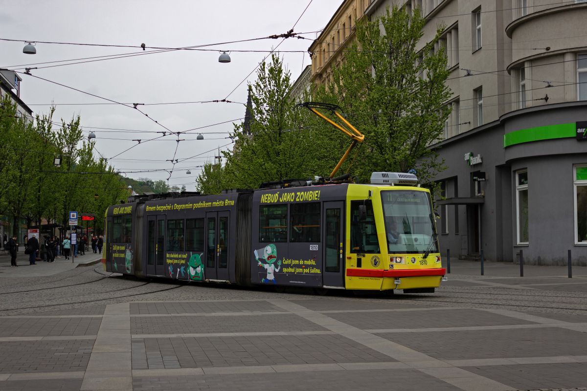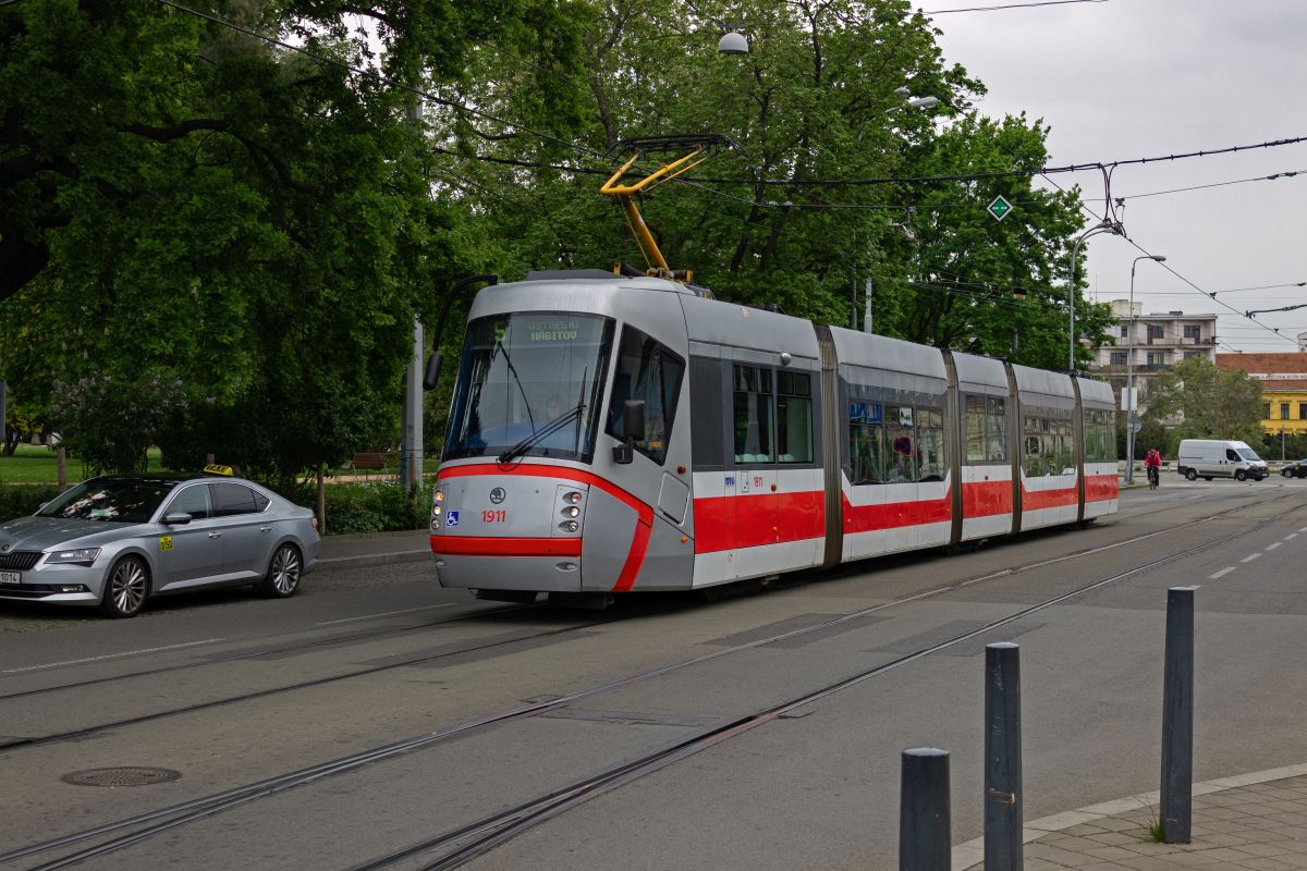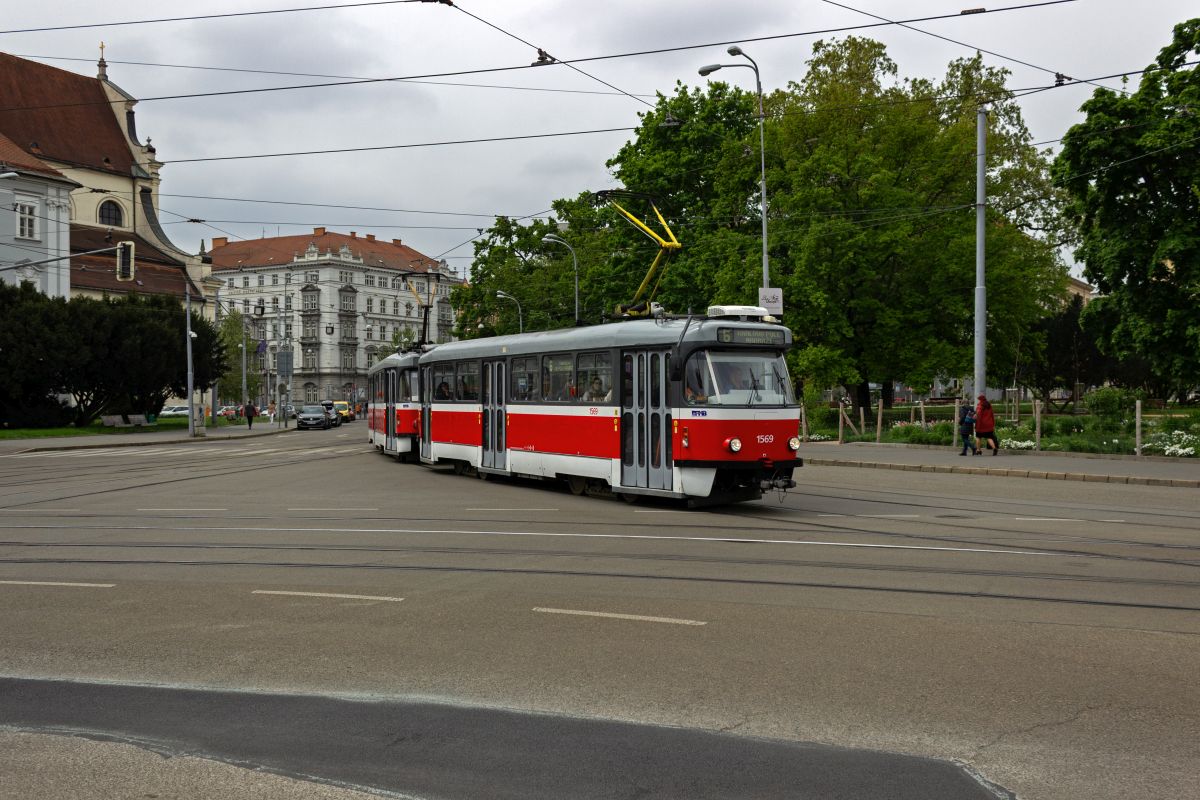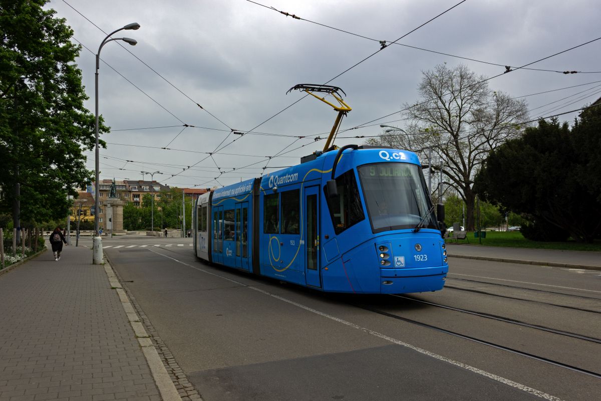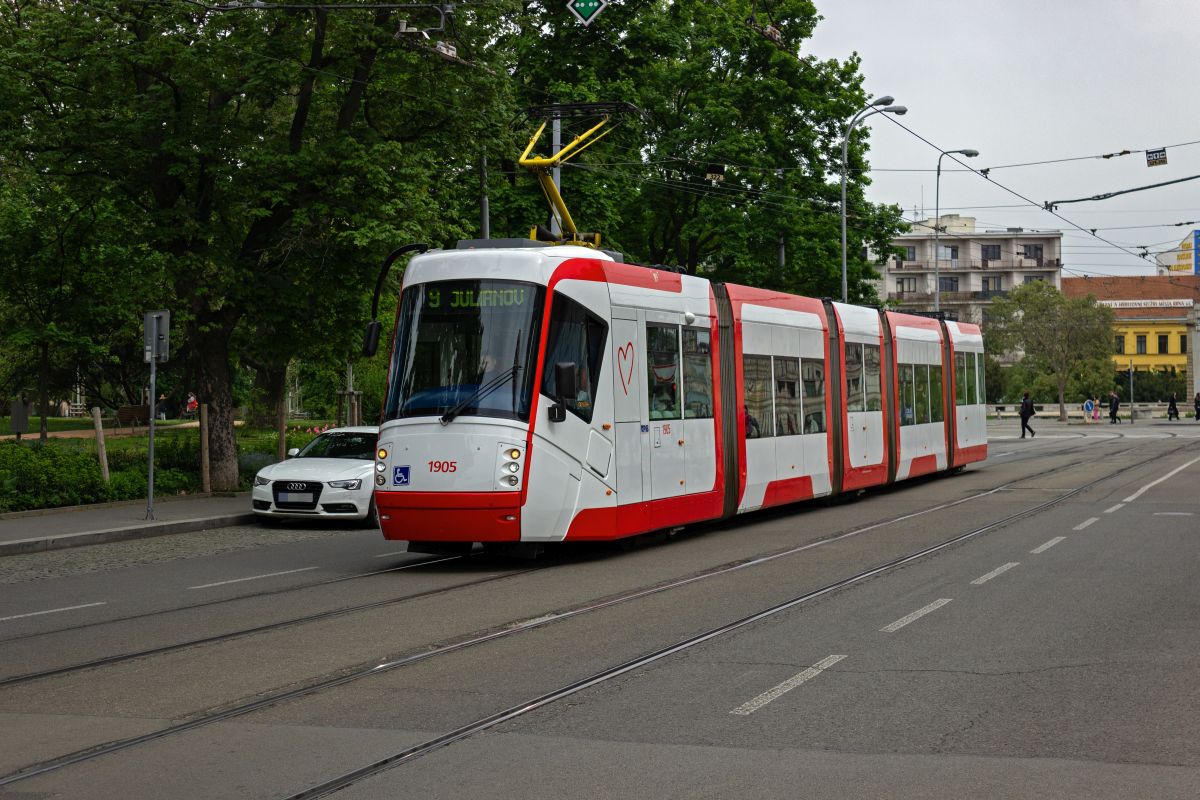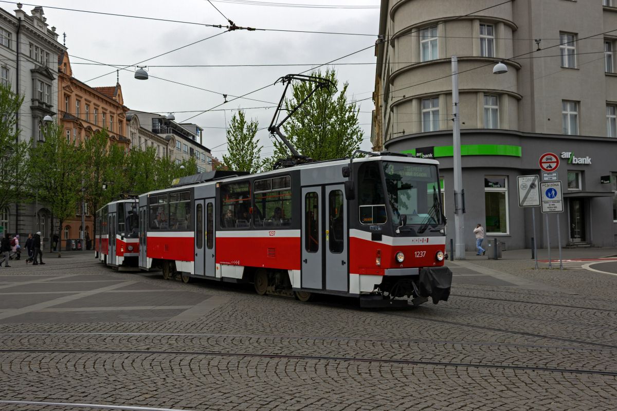tatra-kt8d5rn2-3/901929/der-kt8d5-1703-auf-der-linie Der KT8D5 1703 auf der Linie 4 in Richtung Tomkovo náměstí verlässt die Haltestelle Česká.22.11.2025 Der KT8D5 1703 auf der Linie ...